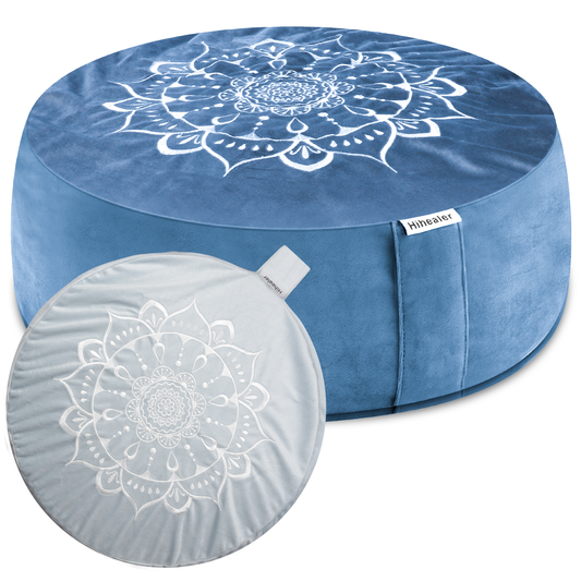 Hihealer Meditation Cushion, Traditional Tibetan Meditation Pillow Velvet Cover - Large Floor Cushion Seating for Adults - Yoga Buckwheat Bolster for Women、Moms