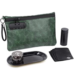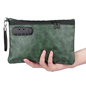 OZCHIN Smell Proof Bag Combo PU Leather Smell Proof Stash Container with Combination Lock 10 x 7 inches (Green)